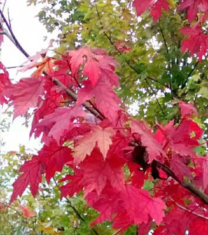 金色的十月,是那秋雁不辭勞苦,不知道是從什么地方,銜來(lái)了秋霜,染紅了那漫山遍野的楓葉,紅的是那么的鮮艷,紅的是那么的燦爛。“霜葉紅于二月花”,紅葉嫵媚在厚重的晚秋里,她吟唱著,她飛舞著,她漫撒在通幽的曲徑處,她飄舞在斜陽(yáng)古道上,她點(diǎn)綴在蔥綠的松林下 。她舞在相思的十月,看!漫山紅透,層林盡染。那是楓的情懷,那是楓的憐愛(ài)。那是楓的訴說(shuō),那是楓的精采。