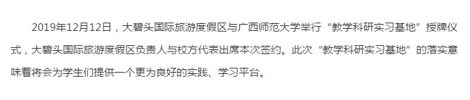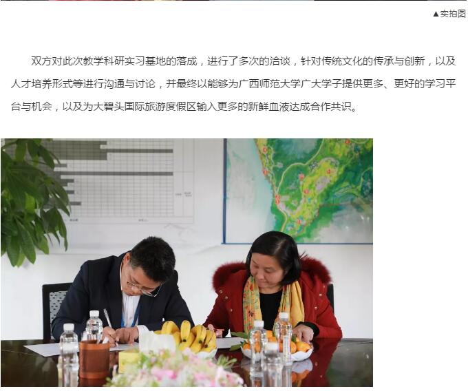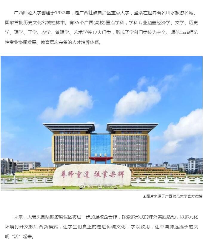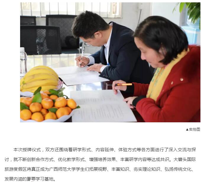 國家AAAA級(jí)景區(qū)大碧頭國際旅游度假區(qū)與廣西師范大學(xué)教學(xué)科研實(shí)習(xí)基地正式授牌簽約!